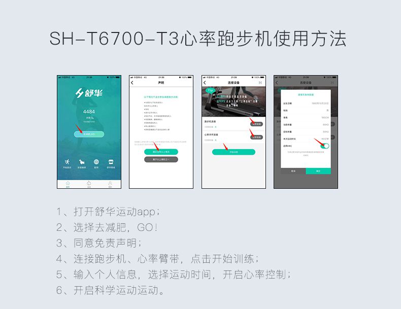 SH-T6700-T3跑步机为了帮助用户进行更加科学有效的运动,搭载米兰APP连接心率臂带实现心率控制,通过监测运动心率从而实现科学运动。