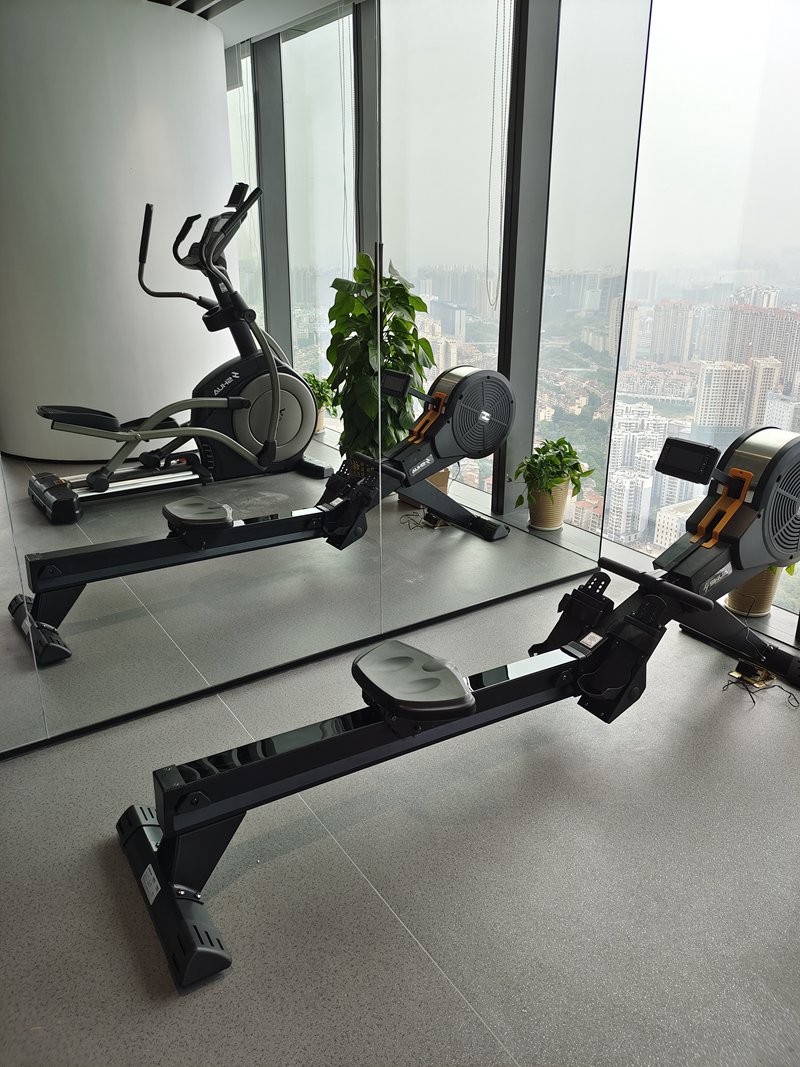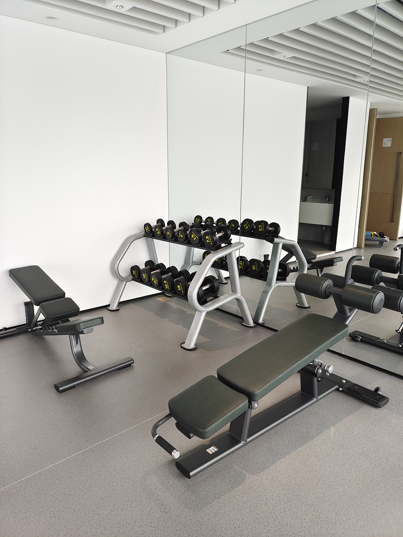 有氧器械配置了米兰V9智能跑步机,X5-E椭圆机,商用划船器SH-R8100。有氧运动可以增强心肺功能,提高身体代谢率,消耗体内多余脂肪。新V9商用跑步机具有坡度缓降功能,有助于肌肉与心血管训练,同时具有心率控制功能,随时监测心率,增强跑步体验感。X5-E椭圆机的生物力学设计,通过不受地面冲击的全身运动,能够进行高强度的有氧运动训练,更好的减轻疲劳感且不会对关节产生压力,保护膝关节的同时实现全身性的锻炼。
