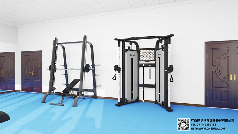 5.米兰史密斯机SH-G6853*1台-锻炼股四头肌、股二头肌、肱三头肌;史密斯机采用固定轨迹的杠铃设计,大大降低了训练过程中的安全风险,通过深蹲、卧推、肩推等经典动作,可以针对性地锻炼腿部力量、上肢力量、背部肌群、胸部塑形以及肩部稳定等,从而全面提升身体素质,满足不同的健身需求;