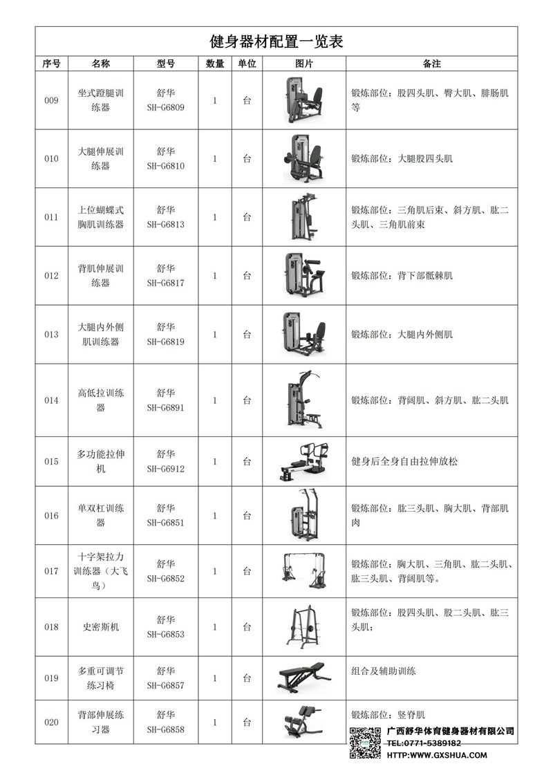 15.米兰多功能拉伸机SH-G6912*2台-多功能拉伸器专为健身人士量身打造的专业拉伸器械,可帮助用户进行更高强度训练前后充分拉伸身体,取得更加满意的锻炼效果,同时还有助于预防在运动过程中及结束后受伤风险。多功能拉伸器精心设计的多方位,人性化辅助把手,能够多角度的刺激目标肌群,让运动更有效,根据亚洲人身体比例,更符合人体工学原理,让运动轨迹更科学。