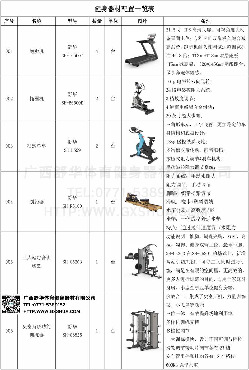 1.米兰X5 PRO高端跑步机SH-T6500T*4台-经典时尚造型配色,简约Z字车架造型,融合各种家居风格,彰显奢华运动质感;21.5英寸高清触控屏-传承动感美学,成就时代典型之作全新升级V3.0系统,支持系统在线升级,极大提升用户交互体验;专利减震跑台-采用SUT双层跑板、全跑台减震系统,且该减震科技获得国家专利,有效减少关节冲击,52cm宽跑台搭配精抽雏形滚筒,稳固不位移;F级马达动力强劲-5.0HP峰值马达,2.5HP持续输出,0~15%坡度调节,最高18km/h时速,胜任不同类型训练;内置9种运动程序,支持场景跑、在线约跑、一键体育考试。不仅可以跑步,还能实时记录运动数据,探索丰富健身课程,边学边跑,拓展运动边界,尽享奔跑体验感。