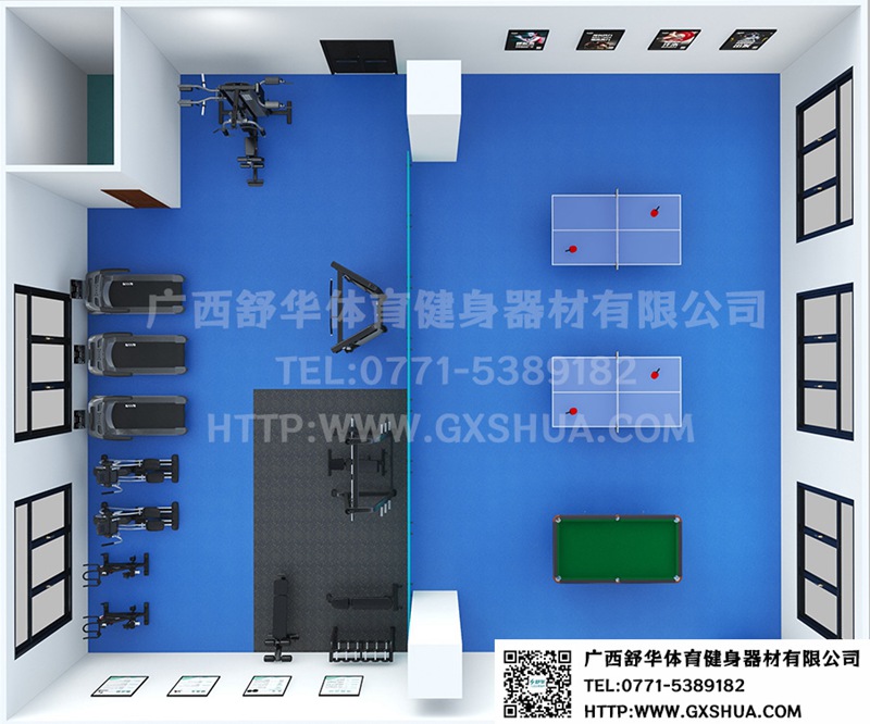 12.台球桌*1张-单位健身房配置台球桌,为员工的业余生活增添了乐趣和选择。与传统的健身器材锻炼相比,台球具有更强的娱乐性和趣味性,能够吸引更多员工参与到健身活动中来,提高健身房的使用率,让员工在工作之余有更多放松身心的方式。