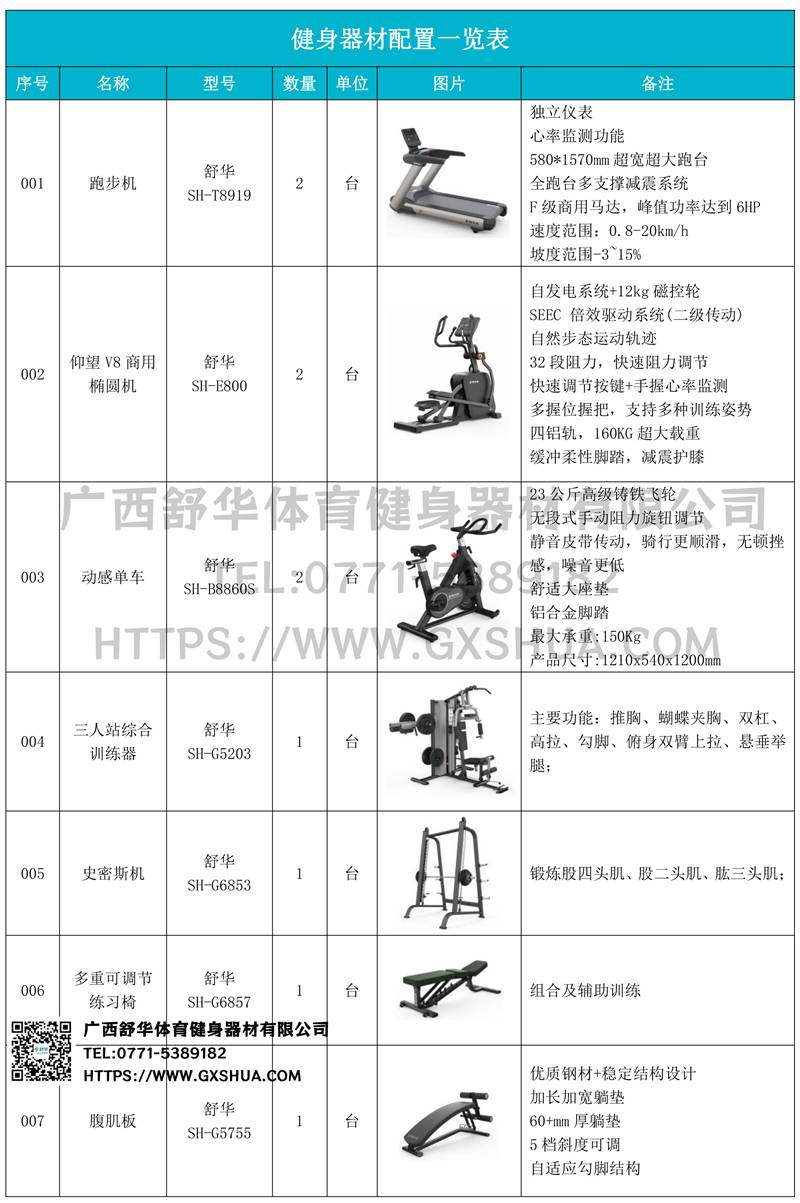 1.米兰V9跑步机SH-T8919*2台-独立仪表-简洁大气,全新外观设计,健康运动新选择;心率监测功能,可通过手握心率、无线心率带等不同方式实时采集心率数据;580*1570mm超宽超大跑台-跑感舒适,跑台整体安全稳定;全跑台多支撑减震平台,保证跑台超强支撑力,达到180kg支撑,满足健身房需求。