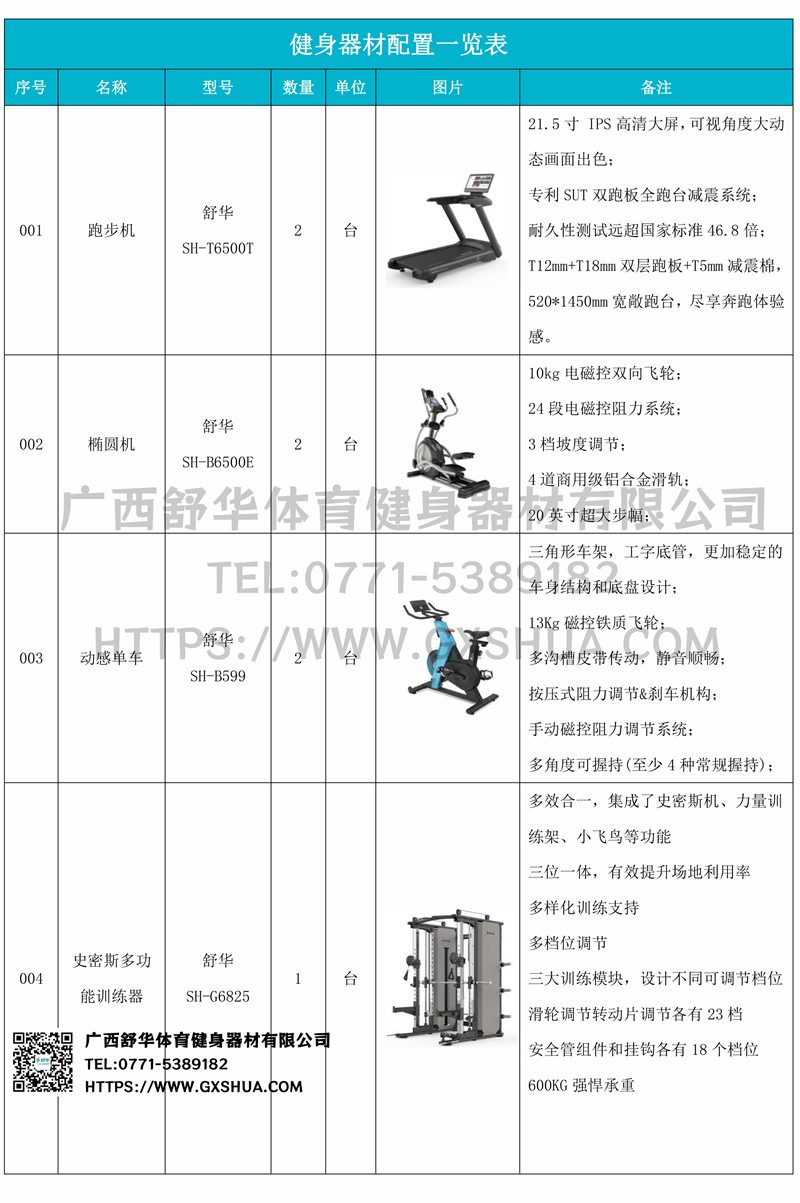 1.米兰X5 Pro跑步机SH-T6500T*2台-采用高性能电机,提供稳定动力,支持长时间高强度运行,适合长时间有氧训练,跑台宽敞,提供舒适跑步空间,减少运动中的束缚感,适合不同体型用户。配备先进减震系统,有效缓解跑步对关节的冲击,降低运动损伤风险,内置智能控制系统,支持多种预设程序和个性化训练计划,用户可根据需求调整速度和坡度,满足多样化训练。