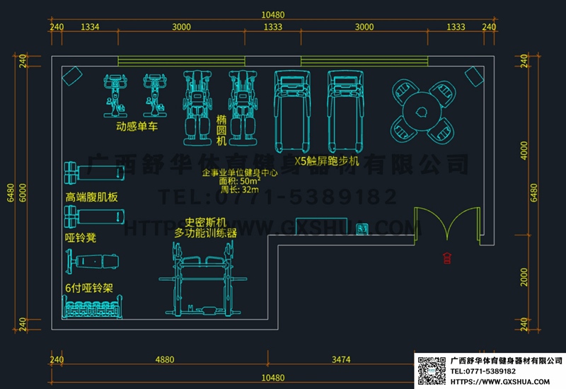 此方案要求面积小于50m²,适用于企事业单位、酒店会所、楼盘社区等健身场所,能满10-15人同时健身使用。(方案根据场地空间大小、预算、产品需求等进行配置仅为启发性参考)