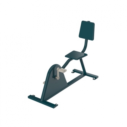 坐于坐垫上,背靠靠垫上,双脚踩住脚踏板,做往复旋转运动