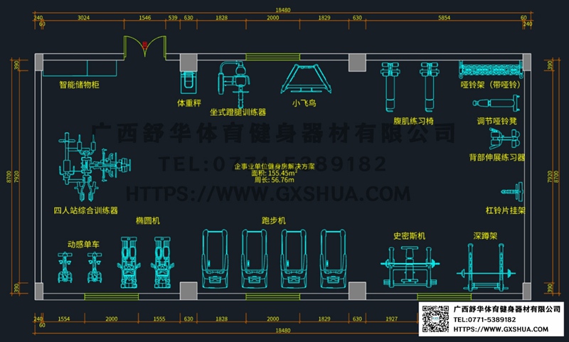 此方案要求面积小于156m²,适用于企事业单位、酒店会所、楼盘社区、工作室、学校等健身场所,能满20-25人同时健身使用。(方案根据场地空间大小、预算、产品需求等进行配置仅为启发性参考)